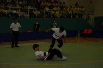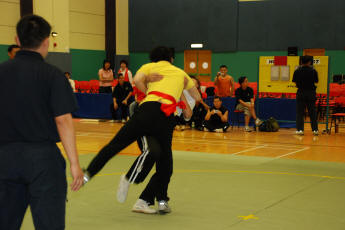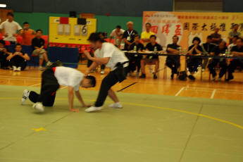 决赛者心声 : 我看赛制没有问题,虽然不淮接触颈部、不淮攻击性掌击,好像失了实战感觉,但是很安全。可能是国家规范化,运动化的自然发展。由于用摔跤的方法最有效直接,国内选手使用摔跤技巧,无可厚非。........能够和李师父比赛,感受王西安大师精英绝技,真获益良多。即使亲到陈家沟学艺,未必有机会见李师父,即使有机会见李师父,亦未必得李师父全力一摔。......
