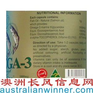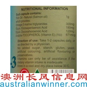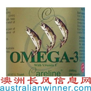 HPCAJD_0077 柯蓝深海鱼油180粒装 Careline omega3,1000mg 深海 Omega-3 三纹鱼油 澳洲原装、在澳洲卫生部严格监管下的GMP药厂精制生产的无毒、无刺激性保健产品。 独立包装每瓶装100粒; 所标金额为1瓶价格。 对于一般人来说,每天服用深海鱼油的剂量以1000mg为宜。成年人每天1—2粒或遵专家指导。 由于鱼油有使血液变稀的功能,因此对于血友病患者或因某种原因身体经常出血的人,以及对鱼类产品过敏的人士,至少应注意服用剂量。 放置于阴干处保存,有效期三年。 深海鱼油是从深海鱼类的肉及脂肪组织中提炼出来的油脂,英文Omega—3,它含有丰富的EPA及DHA等不饱和脂肪酸。据有关资料介绍,深海鱼油具有降低血液中的胆固醇,有效地控制人体血脂溶度,防止血小板凝聚成为血块而引起血管闭塞,从而防治动脉硬化、高血压、脑血栓、脑溢血、老年性痴呆、风湿性关节炎和糖尿病等功效。深海鱼油对保持人体健康、预防心血管疾病、改善内分泌功能起着重要作用,是保持人体健康所必然的营养成分。有“血管清道夫”之美称。