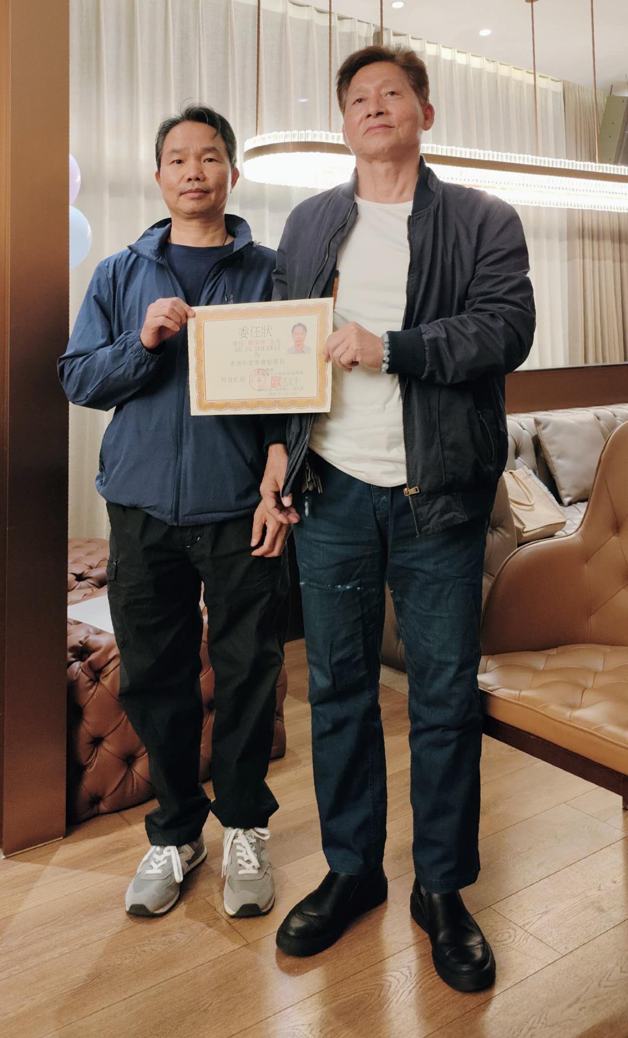 左起:邹孟华(深圳市赵氏形意太极拳协会秘书长),傅深桂(香港赵氏形意太极协会秘书长)