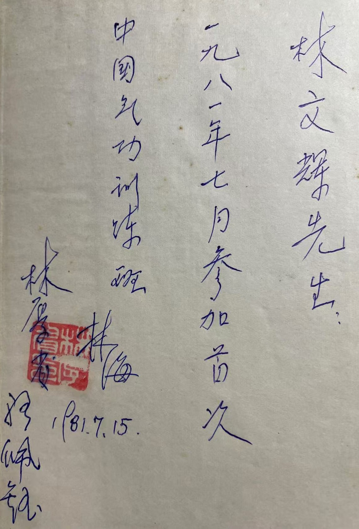 林厚省师父当年是林文辉的老师,以下是林厚省师父的亲笔签名。